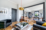 Avec son style affirmé et ses volumes généreux, cette propriété offre une pièce de vie baignée de lumière, sublimée par un bow-window qui ouvre la perspective sur la verdure environnante.