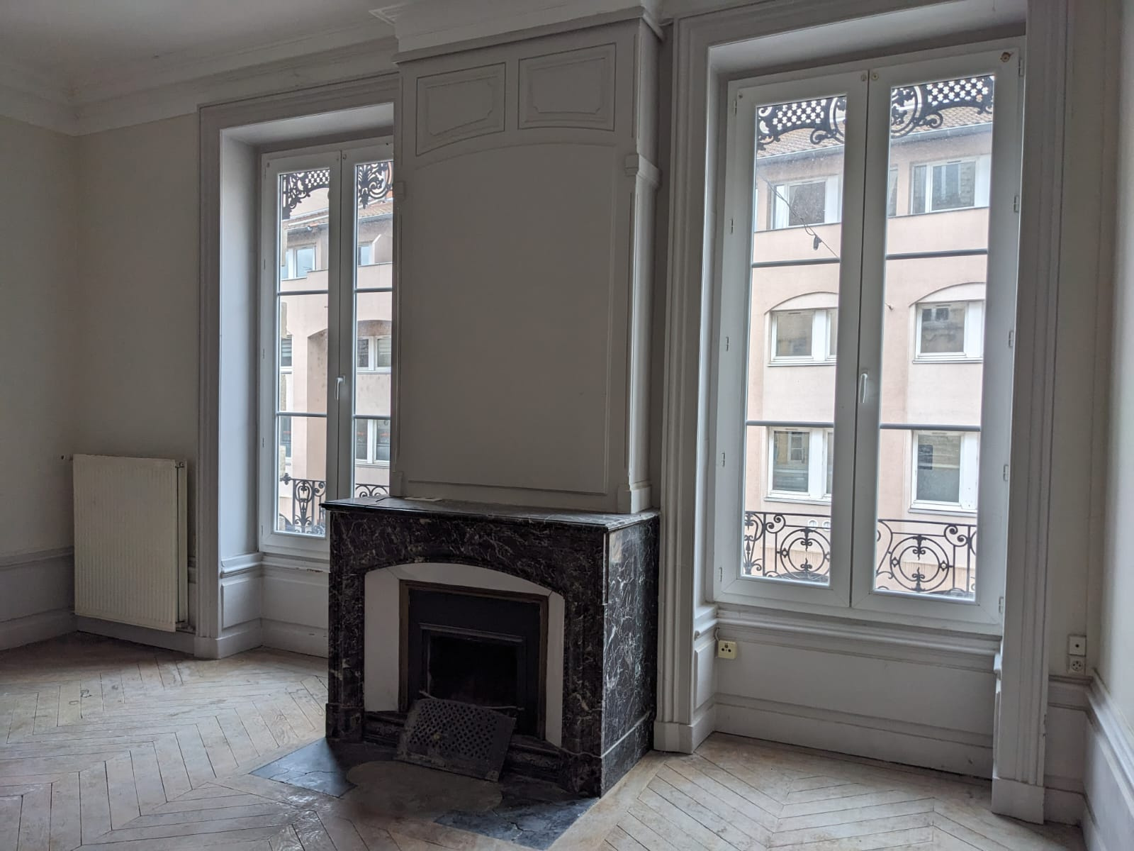 - Charme de l’ancien : cheminées en marbre, boiseries d’époque, parquets massifs et hauteurs sous plafond.